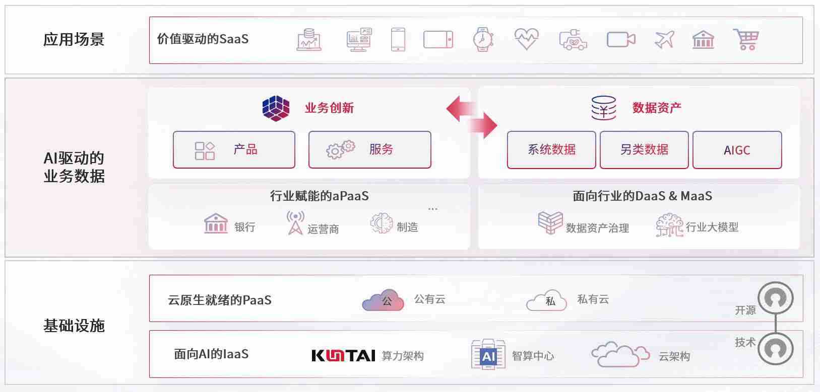 数字时代,,,围绕企业数字化转型的关键要素,,,云顶国际8588yd数码开创性的提出数云融合战略和技术体系框架,,,着力在云原生、、、、数字原生、、AI原生和信创产业上架构产品和服务能力,,为处在不同数字化转型阶段的快消零售、、、汽车、、、金融、、、、医疗、、、政企、、教育、、、、运营商等行业客户提供泛在的敏捷IT能力和融合的数据驱动能力,,构建跨界融合创新的数字业务场景和新业务模式,,,,助力企业级客户建立面向未来的核心能力和竞争优势,,全面推动社会的数字化、、、、智能化转型升级。。。。